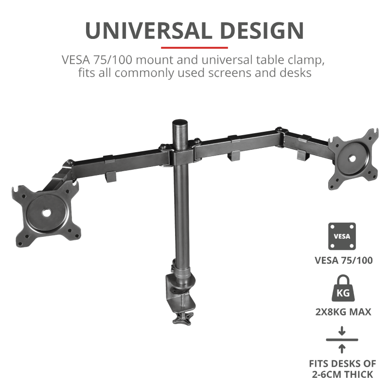 Trust GXT 1120 MARA dual nosač monitora, 23941. Stolni, dualni nosač monitora, za maksimalnu fleksibilnost i upotpunjen gaming doživljaj.