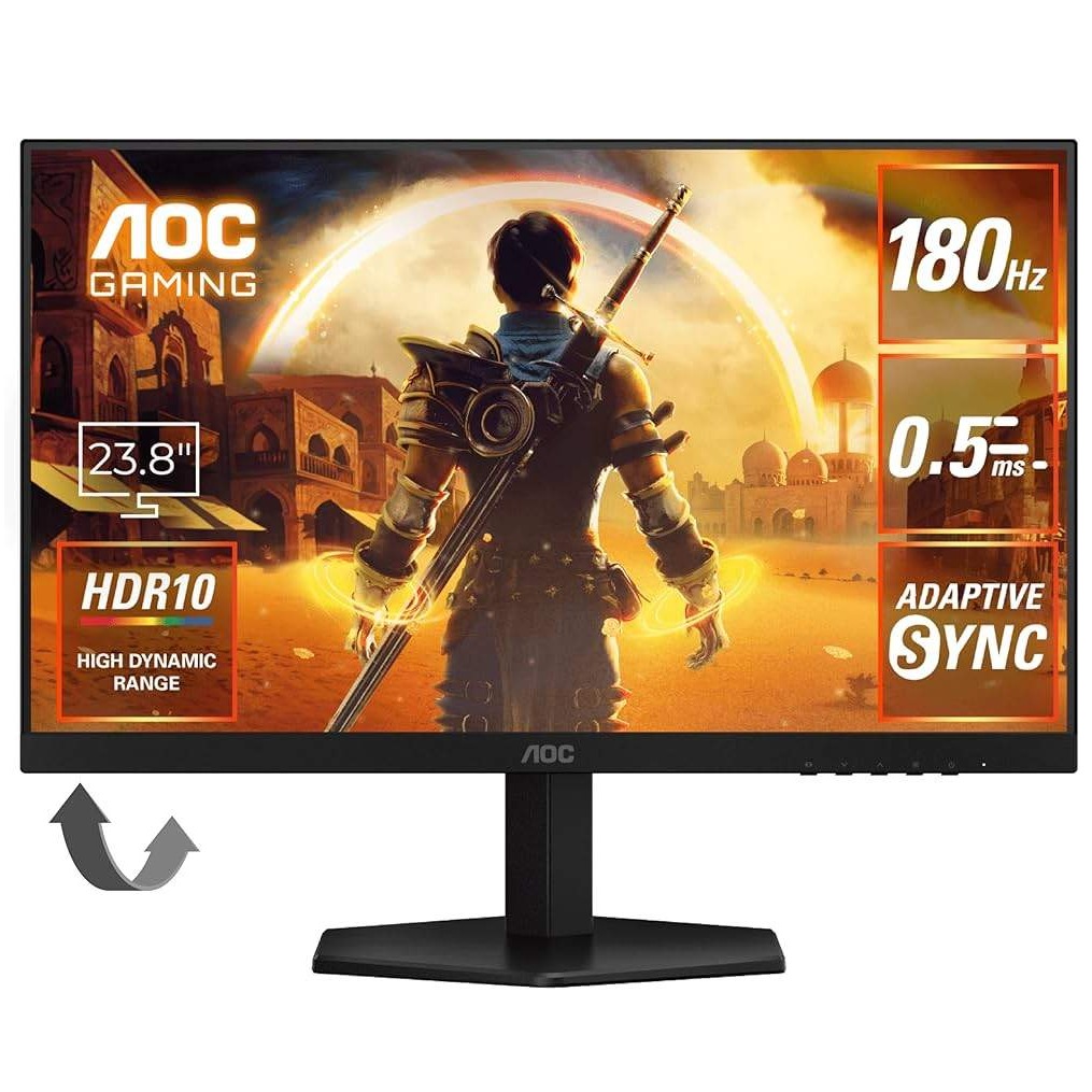 AOC Monitor Gaming 24G42E 23.8" Fast IPS, 1920x1080, 180Hz, 1ms (GTG), 300 cd/m2, 1000:1, Adaptive Sync, G-Sync Compatible, HDR10, 1xHDMI, 1xDP, Tilt