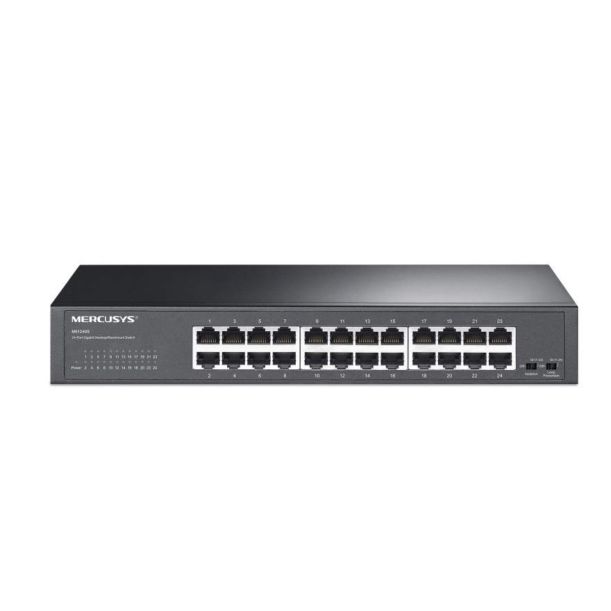 Mercusys MS124GS 24-Port Gigabit Desktop/Rackmount Switch, 24x Gigabit RJ45 Ports, 1U 13-inch Rack-mountable Steel Case, Isolation Mode,Loop Prevention,Plug and Play
