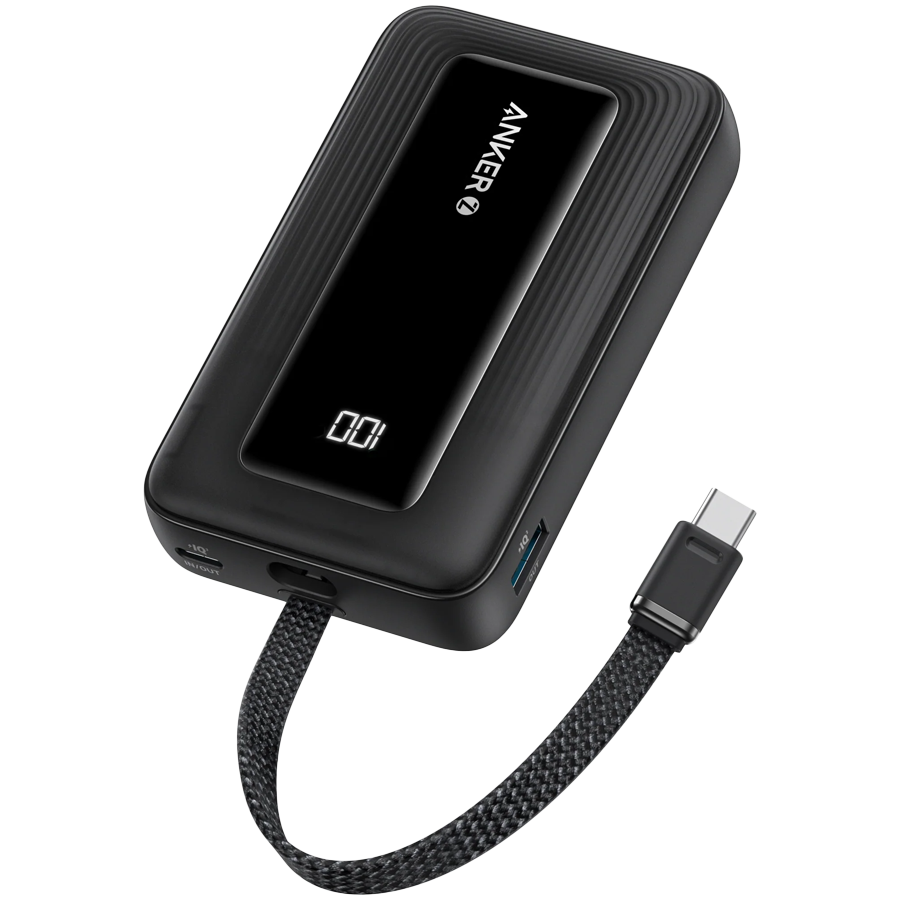 Anker Power Bank (10K, 30W, Built-In USB-C Cable) Black