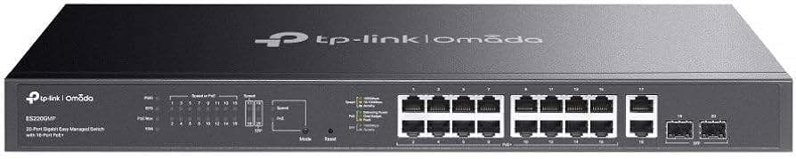 TP-Link ES220GMP Omada 20-Port Gigabit Easy Managed Switch 16 x Gigabit PoE+ Ports, 2 x Gigabit Non-PoE Ports, 2 x Gigabit SFP Ports, 250W PoE Power, Rack-mountable, Omada App, Flow Control, Loopback Detection,Port Isolation,Port Mirroring,LAG,VLAN