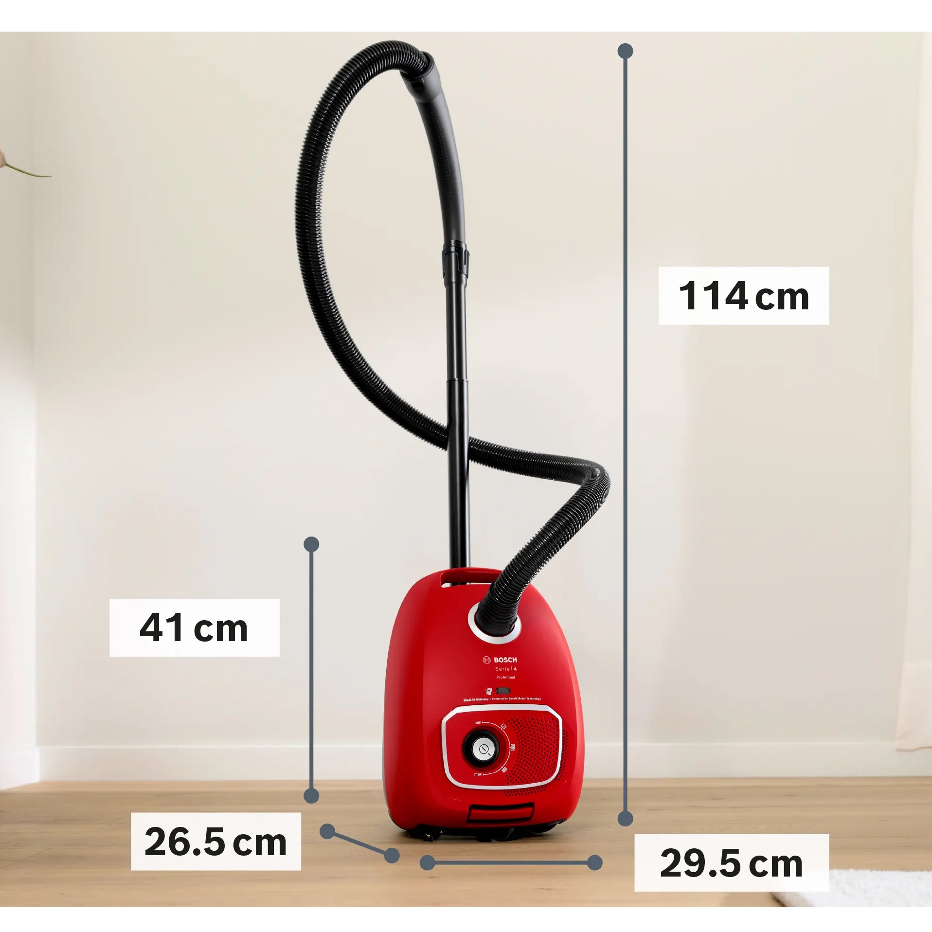 BOSCH Usisivač s vrećicom Serie 4|, PRO ANIMAL,Crveni, Operativni raspon 11m