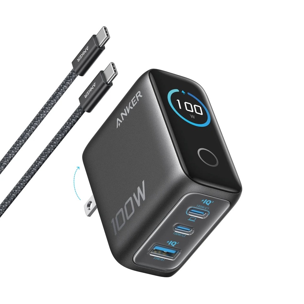 Anker Charger (100W, 3 Ports, Smart Display) Gray