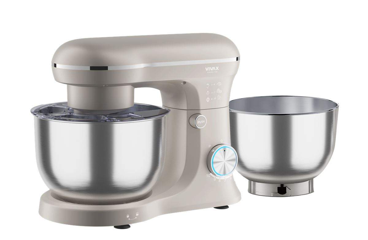 Unesite snagu i praktičnost u svoju kuhinju uz VIVAX robot mikser RM-41500S. Ovo je savršeni pomagač za svaku kulinarsku kreaciju. Sa snažnim motorom od 1500 W i čak 10 razina brzine, ovaj mikser prilagođava se svakoj vrsti pripreme, od laganih krema i šlaga do za htjevnijeg tijesta. Kompaktna inox posuda od 4 L nudi dovoljno prostora za miješanje manjih i srednjih količina, idealno za svakodnevnu upotrebu. U kompletu dolaze tri metlice: žičana metlica za šlag i bjelanjke, metlica za kreme te snažna metlica za gusto tijesto – sve što vam treba za savršene rezultate u pečenju i kuhanju. RM-41500S dizajniran je za jednostavno korištenje i dugotrajnu pouzdanost. Bilo da pripremate desert za obitelj, kruh za svaki dan ili posebnu tortu za svečanu prigodu, ovaj mikser učinit će svaki zadatak lakšim i ugodnijim. VIVAX RM-41500S pruža snagu, eleganciju i praktičnost u jednom uređaju koji će ubrzo postati neizostavan u vašoj kuhinji!